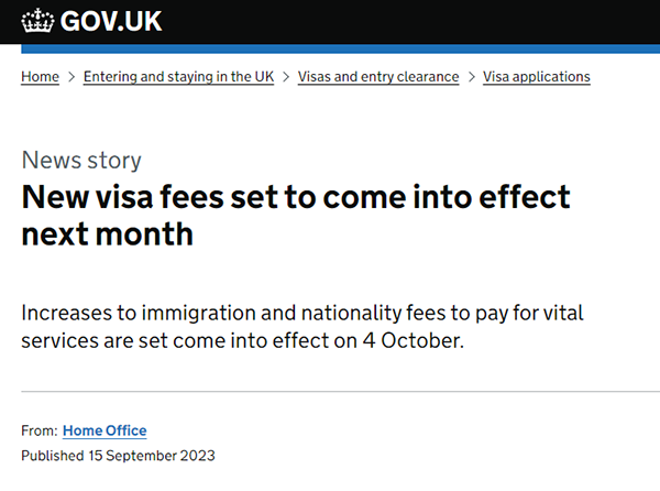 近日,英国内政部官宣:自2023年10月4日起,在英国境内/境外的签证申请、入籍申请以及加急服务等一系列签证相关服务费用将正式上涨。