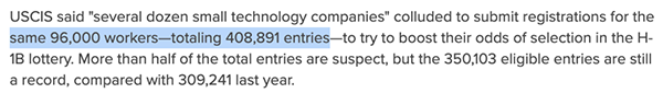 1、加强欺诈监管:严格把关雇主公司审查 由于上一轮H-1B申请数量激增,引起了移民局的重视,开始查违规情况,调查显示有96,000人提交了多份申请(即用多份Offer申请了H-1B),光是这些人就提交了408,891份,相当于1个人抽4份。 为了杜绝这种抽签“作弊”行为,移民局本次加强了对雇主&雇员关系以及雇主公司真实性的审查: 雇佣关系:将对“雇主-雇员关系”给出明确的定义和更清晰的指导 雇主公司:随机对雇主公司进行实地走访 毫无疑问,新规对类似ICC等劳务外包公司的“作弊抽签行为”是一个致命打击。但对于拿名企Offer的同学来说则无需担心。 2、调整申请流程:解决“Cap-Gap Issues” 对于持F1签证的留学生来说,只要你想留美工作,就意味着要将OPT➡️H-1B,具体流程如下: 在美国留学生持有F1签证,在毕业之后有一年的Optional Practical Training时间,简称OPT。在OPT结束之前必须申请到H-1B签证才能在实习期结束后继续工作。 在申请流程中,有的同学会出现OPT到期日期和H-1B结果生效前,存在的一个“Cap-Gap”时间。 在这段时间内,留学生的F1学生签证和OPT工作许可已经过期,但是由于H-1B签证的生效日期尚未到来,留学生可以继续合法地留在美国工作。 Cap-Gap必须要在OPT或OPT Grace Period(OPT到期后的60天缓冲期)过期前提交了H-1B申请才可以获得,仅仅中签则不行。 这就导致了,如果你的OPT延期/申请不及时,OPT无法自动延长至H1B生效,就会出现各种各样的问题,严重的甚至会被迫停工。 而在移民局新规中,涉及调整的流程就是优化“Cap-Gap”问题。为了解决这部分问题,本次法规将:为I-129申请表上列出的H-1B就业开始日期提供更多灵活性。 进一步明确和修改H-1B Amendment(H-1B变更申请)的递交要求。 总体来说,如果12月能够通过这个议案,对明年之后参与抽签的同学来说,将会更加公平。 但是,近两年H-1B抽签中签率低于20%是不争的事实。抽签还能碰碰运气,即便冲破重重阻碍幸运抽中拿到H-1B,留学生们想要长久留下,身份问题依旧迫在眉睫。