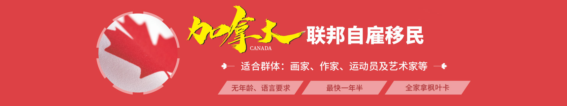 加拿大联邦自雇移民(Self-employed Person Program)旨在吸引文体领域有杰出成就或表现的人才(这类人群包括:作家、画家、艺术家、演员、运动员、室内设计师等或在文化、艺术、娱乐、体育领域从事相关技能工作的人士)以自雇形式移民加拿大,不会占用加拿大劳工市场的工作机会,自行以个人的才能及专业技术为自己创造工作,愿意并能够为加拿大的经济、文化或体育事业做出重大贡献。